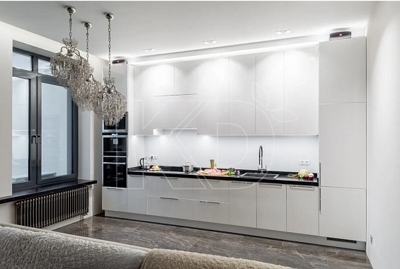 Белая глянцевая кухня в интерьере