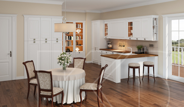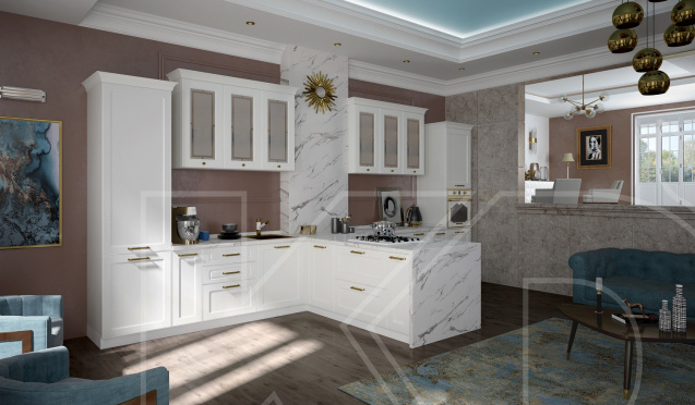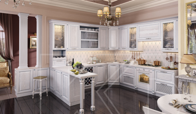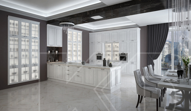 Настоящие эстеты и ценители роскоши выбирают модели в классическом стиле. Кухни белых цветов в этом случае декорируют позолотой, резьбой, лепниной и патиной.
