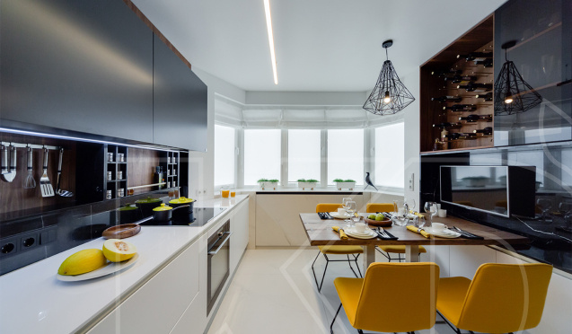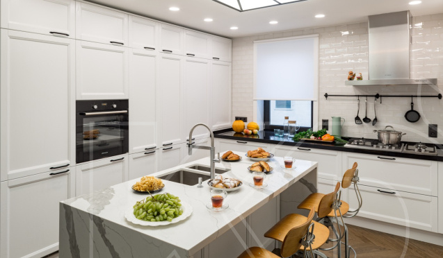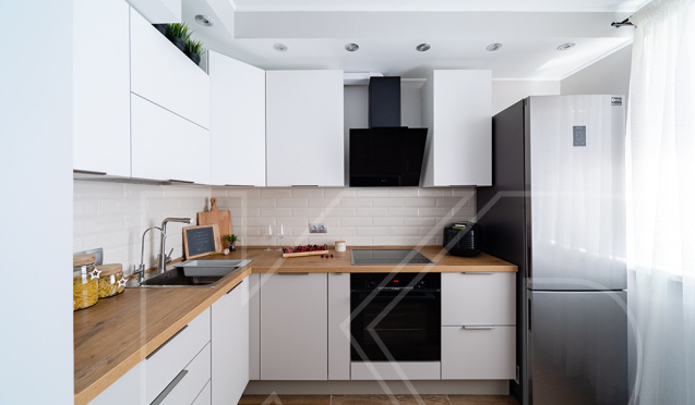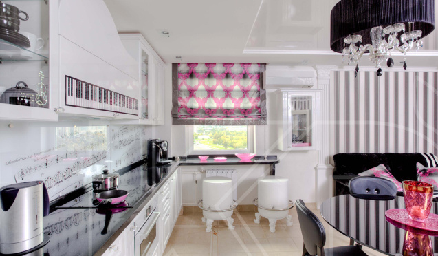 Кухни в белых тонах рекомендуется дополнять контрастными деталями. Благодаря этому пространство заиграет новыми красками и будет выглядеть особенно эффектно.