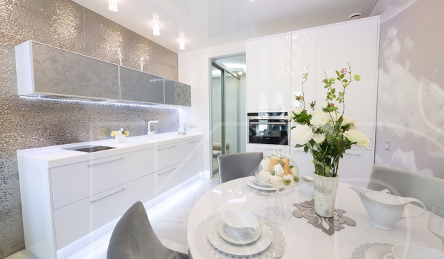 Кухня в белом цвете – это стильное и практичное решение. Подобную модель можно встроить в комнату с любыми дизайнерскими особенностями.