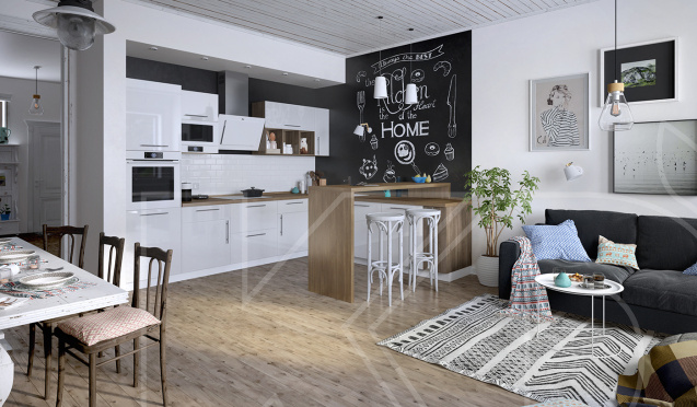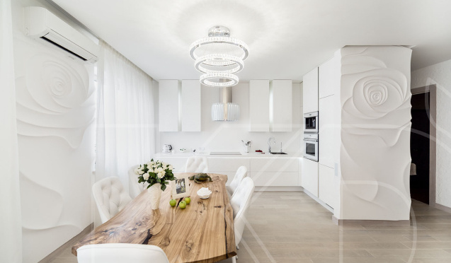 Визуальное расширение пространства. Белый цвет зрительно увеличивает помещение, что делает его идеальным выбором для небольшой площади.