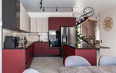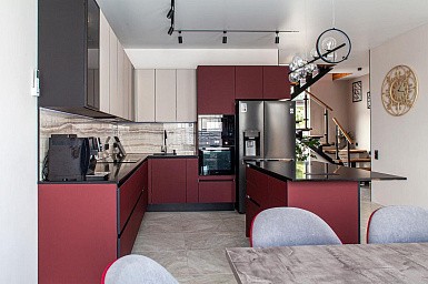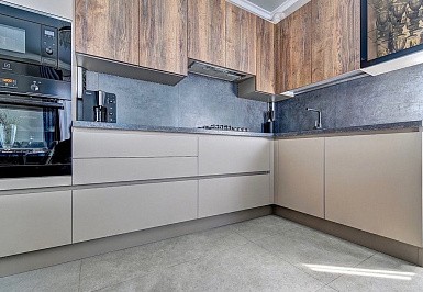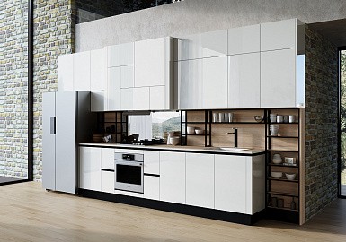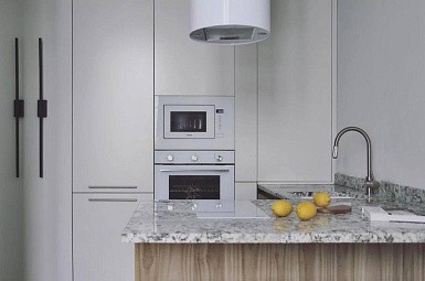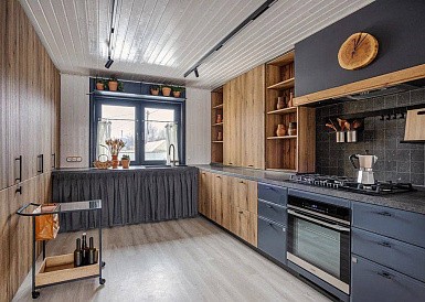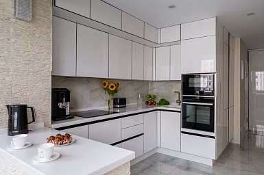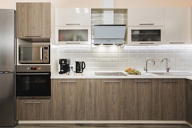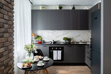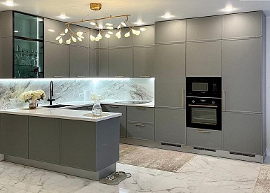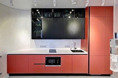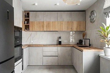 Если стены кухни не позволяют установить стандартный комплект мебели, рекомендуем заказать кухню по индивидуальным размерам. В этом случае дизайн-проект будет реализован с учетом особенностей помещения. Например, ниши будут использованы для установки полок и бытовой техники.
