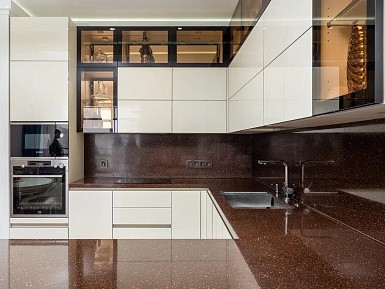 Глянцевые текстуры выглядят презентабельно и часто используются в современных интерьерах. С их помощью можно визуально расширить пространство, так как глянец отражает солнечные лучи. Даже самый аскетичный комплект мебели в глянце будет выглядеть гораздо дороже.