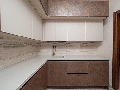 Компания «Кухонный Двор» представляет услугу «Вызов дизайнера на дом». Наш специалист приедет к вам в обговоренное время и снимет все необходимые замеры. Также он привезет каталог с материалами, чтобы вы смогли выбрать подходящий цвет и текстуру.