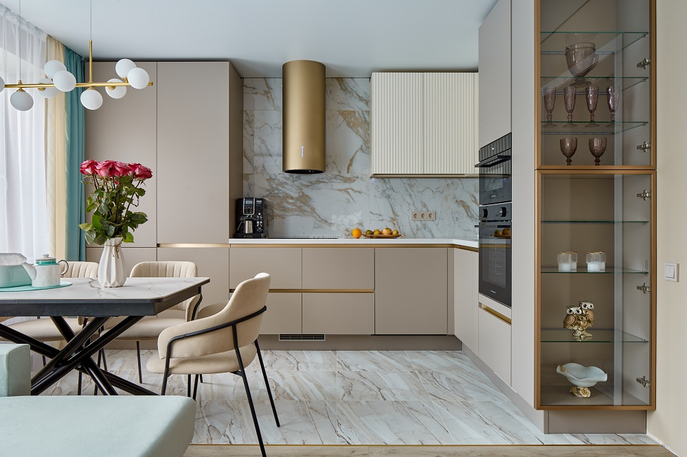 Кухня как «тихий ассистент»: матовый кашемир и золотой пунктир