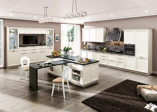 Гарнитур из шпона дуба выглядит элегантно и изысканно. Этот материал представлен в широкой цветовой палитре – от молочного до черного – поэтому создать с ним желаемый дизайн интерьера будет достаточно просто.