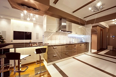 Самый эстетичный материал – натуральный камень, например, гранит или мрамор. Он очень красив, благородно смотрится и служит десятками лет. Поэтому купить кухню со столешницей из камня будет хорошим решением. Однако нужно учитывать, что такой материал хрупок и может образовывать сколы при сильных ударах. Искусственный камень такими минусами не обладает. По внешнему виду он ничем не отличается от натурального, но гораздо более долговечен и устойчив к механическим повреждениям и агрессивным чистящим средствам.
