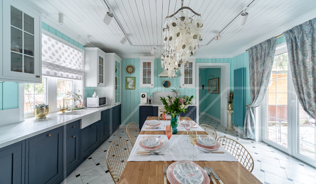 • Применение натуральных, экологически чистых материалов. Самый популярный – натуральное дерево. Также для обустройства кухни выбирают натуральный камень, текстиль (на основе хлопка, льна, джута и так далее). Если бюджет ограничен, то можно выбрать качественные заменители.