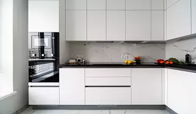 2. Экоплита Egger в сборке кухонного гарнитура с ламинированием заготовок с обеих сторон – идеальное решение для небольшой кухни, которую хочется расширить.