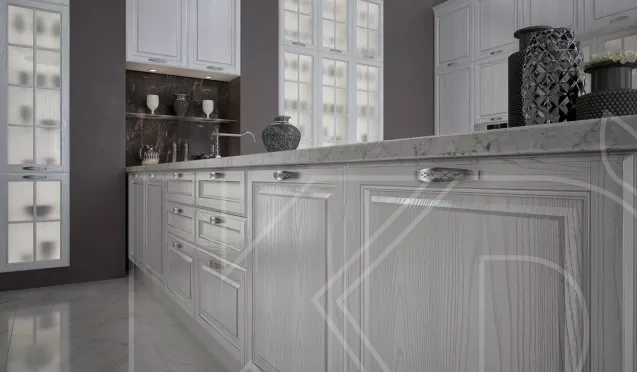 Серый цвет тоже можно использовать при создании позолоченной кухонной мебели. Это нейтральный оттенок, который не отвлекает внимание от золотых деталей, но при этом не позволяет им перегрузить пространство.